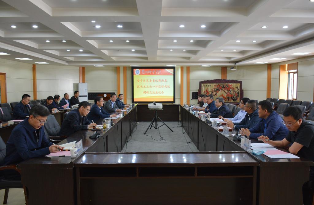王立山介绍了安宁区经济社会发展情况,并对学校提出的问题逐一进行了回应,要求安宁区相关部门建立校地合作对口办理清单,限定时间节点,确定路线图和时间表,主动对接学校职能部门,尽快解决好制约学校发展的相关问题。