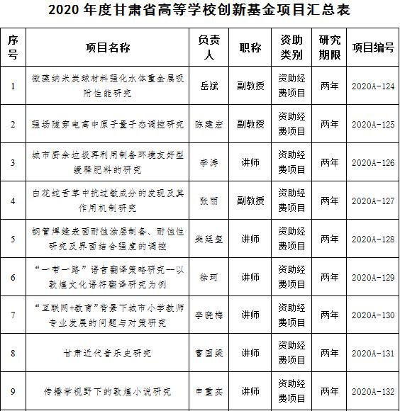 近日,2020年度甘肃省高等学校创新基金项目评审结果揭晓,点点官网共有18项甘肃省高等学校创新基金项目获准立项。