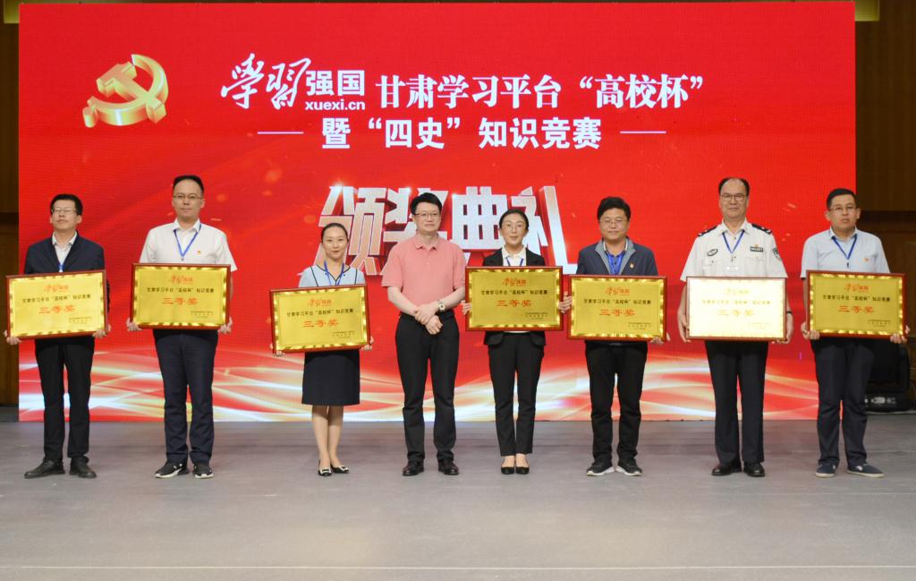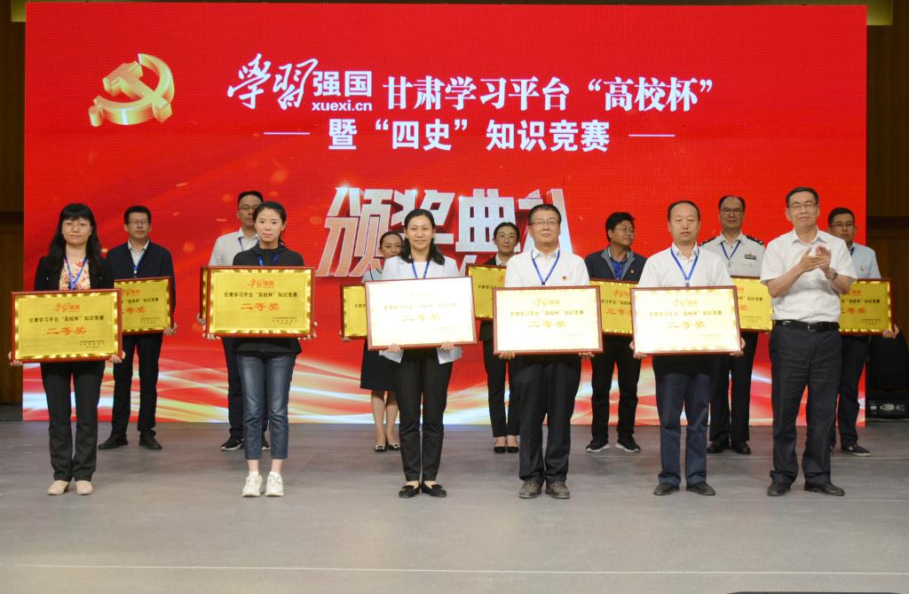 为深入学习贯彻习近平新时代中国特色社会主义思想,贯彻落实习近平总书记在学校思想政治理论课教师座谈会上的重要讲话精神,深化“四史”学习教育,积极引导广大师生主动学用“学习强国”学习平台,在全省高校营造“勤学、乐学、好学”的浓厚氛围,9月3日,由中共甘肃省委教育工委、甘肃省教育厅主办的“学习强国”甘肃学习平台“高校杯”暨“四史”知识竞赛在taptap点点举办。来自全省49所高校的代表队、147名选手参加了比赛,经过7轮初赛和2轮决赛的激烈比拼,甘肃广播电视大学、陇东学院代表队获得一等奖,并将代表高校参加全省知识竞赛;陇南师范高等专科学校、白银矿冶职业技术学院、河西学院、甘肃农业大学、甘肃财贸职业学院等5支代表队获得二等奖; 甘肃交通职业技术学院、兰州石化职业技术学院、武威职业学院、甘肃警察职业学院、兰州职业技术学院、甘肃中医药大学、兰州理工大学等7支代表队获得三等奖。