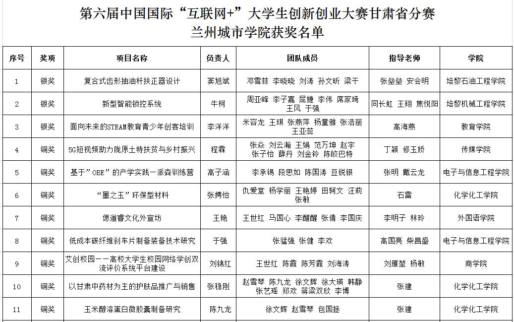 近日,第六届中国国际“互联网+”大学生创新创业大赛甘肃省分赛决赛在兰州财经大学圆满落幕。本次大赛由甘肃省教育厅主办,兰州财经大学承办。甘肃省分赛自6月启动,共吸引了甘肃省55所大中专院校、7019个项目团队、37048位学生参加。在终审决赛中,点点官网荣获银奖3项,铜奖15项,学校获评“优秀组织单位”荣誉称号,获奖数量上有了新突破,同比去年增长350%。