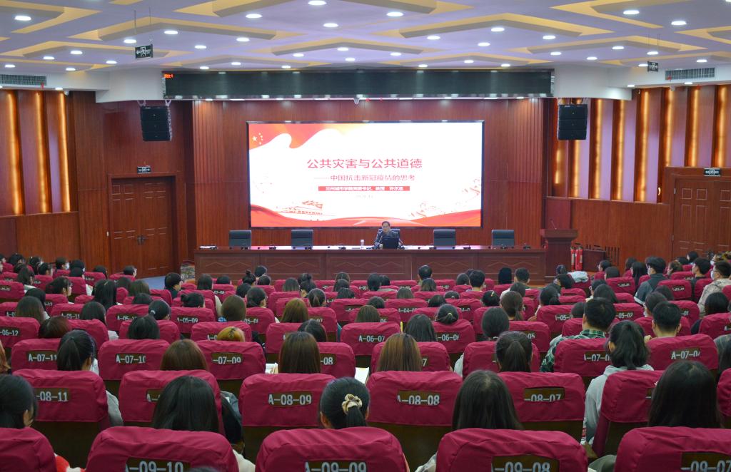 11月12日,校党委书记许尔忠教授走上讲台,在校本部大学生活动中心为国际文化翻译学院、马克思主义学院400余名学生讲授了题为《公共灾害与公共道德——中国抗击新冠疫情的思考》的思想政治理论课。