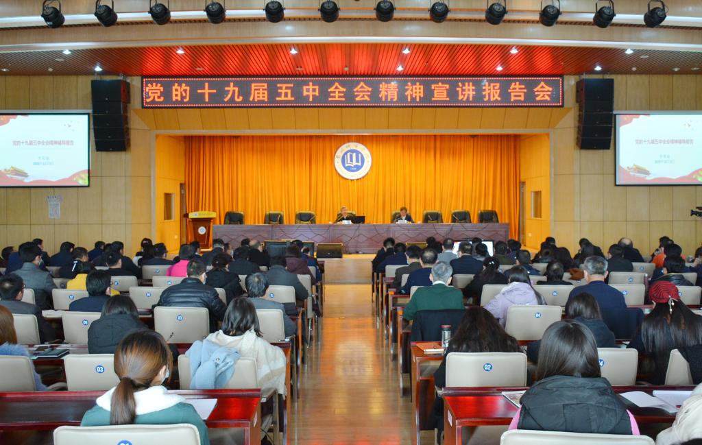 报告中,李荣灿紧扣党的十九届五中全会主题,联系世情、国情、党情和省市情实际,用生动案例和详实数据,回顾了全面建成小康社会取得的决定性成就,分析了当前和今后一个时期我国发展环境面临的深刻复杂变化,阐释了“十四五”时期经济社会发展的指导方针和主要目标、解读了全面落实加快构建新发展格局的决策部署、介绍了兰州市关于贯彻落实全会精神和编制“十四五”规划的初步考虑,报告深入浅出、内容丰富,帮助师生深化了对全会精神的理解。