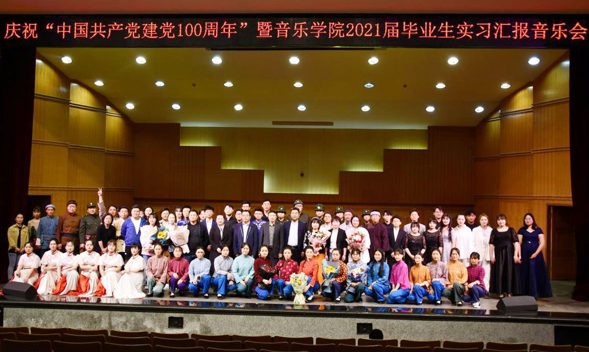 为推动党史学习教育走深走实,5月7日晚,音乐学院庆祝中国共产党建党100周年暨2021届毕业生汇报演出在校本部音乐厅举行。校党委常委、副校长莫超、牟录贵,学校相关部门、音乐学院负责人及音乐学院全体师生共同观看了演出。