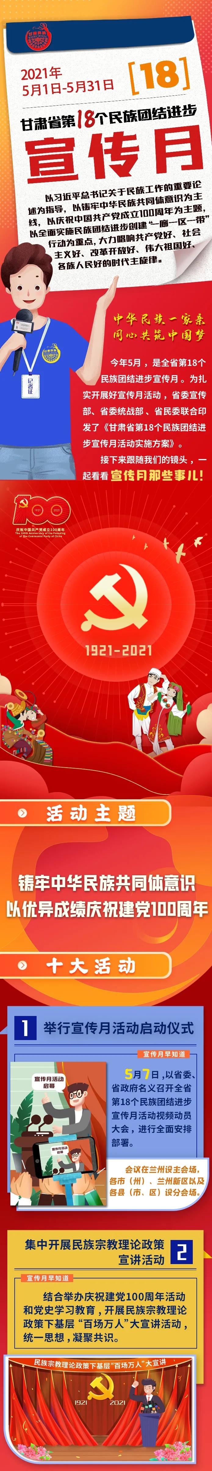 5月,是石榴花盛开的季节,也是甘肃省民族团结进步宣传月,陇原2600万各族儿女像石榴籽一样紧紧抱在一起,铸牢中华民族共同体意识,谱写新时代民族团结进步事业高质量发展的光辉篇章,以优异成绩庆祝建党100周年!
