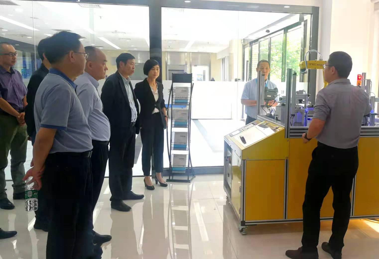 在北京华晟经世信息技术股份有限公司,许尔忠一行考察了公司产品展示与体验中心,与公司董事长张勇、执行副总裁梁舒等进行座谈,详细了解华晟经世近年来在助力高校专业建设、应用型技能人才培养等方面取得的成果。许尔忠指出,校企合作要追踪教育前沿,通过信息化技术支撑专业的发展,助力学校进行一流专业建设,服务地方经济社会发展;合作专业的人才培养要做到学习过程和生产过程的耦合,注重学生的能力输出,结合“工场化”学习体系建设,进行学习过程的革新;在现代产业学院和未来技术学院建设方面,双方要在解决学生产业面向、适应西部地区实际等方面进行创新和实践。