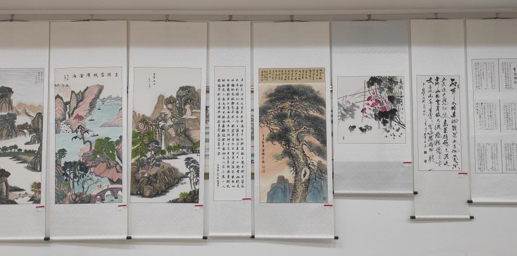 6月16日,学校离退休教职工庆祝中国共产党成立100周年书画摄影展在图书馆三楼开展。校党委书记许尔忠,党委常委、副校长牟录贵和40多位离退休老同志及书画爱好者出席。