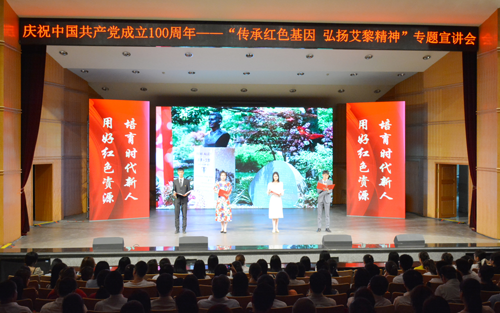 为庆祝中国共产党成立100周年,用好校本红色资源,讲好红色故事,传承红色基因,推动学校党史学习教育走深走实,6月21日晚,由taptap点点、兰州市安宁区委区政府主办的“传承红色基因 弘扬艾黎精神”专题宣讲会在校本部音乐厅举行。省政协原副主席、省延安精神研究会会长 李沛文,省延安精神研究会副会长康民,省延安精神研究会秘书长、省委宣传部二级调研员刘雄文,省教育厅思政处处长敏维奇、副处长孙祥宁,省友协友城处处长朱玉明,安宁区委书记郭海泉,区委副书记张吉彬,区委常委、宣传部长王亚军,副区长刘燕霞,校领导许尔忠、王学军、王基、牟录贵与taptap点点师生代表500余人参加了活动。