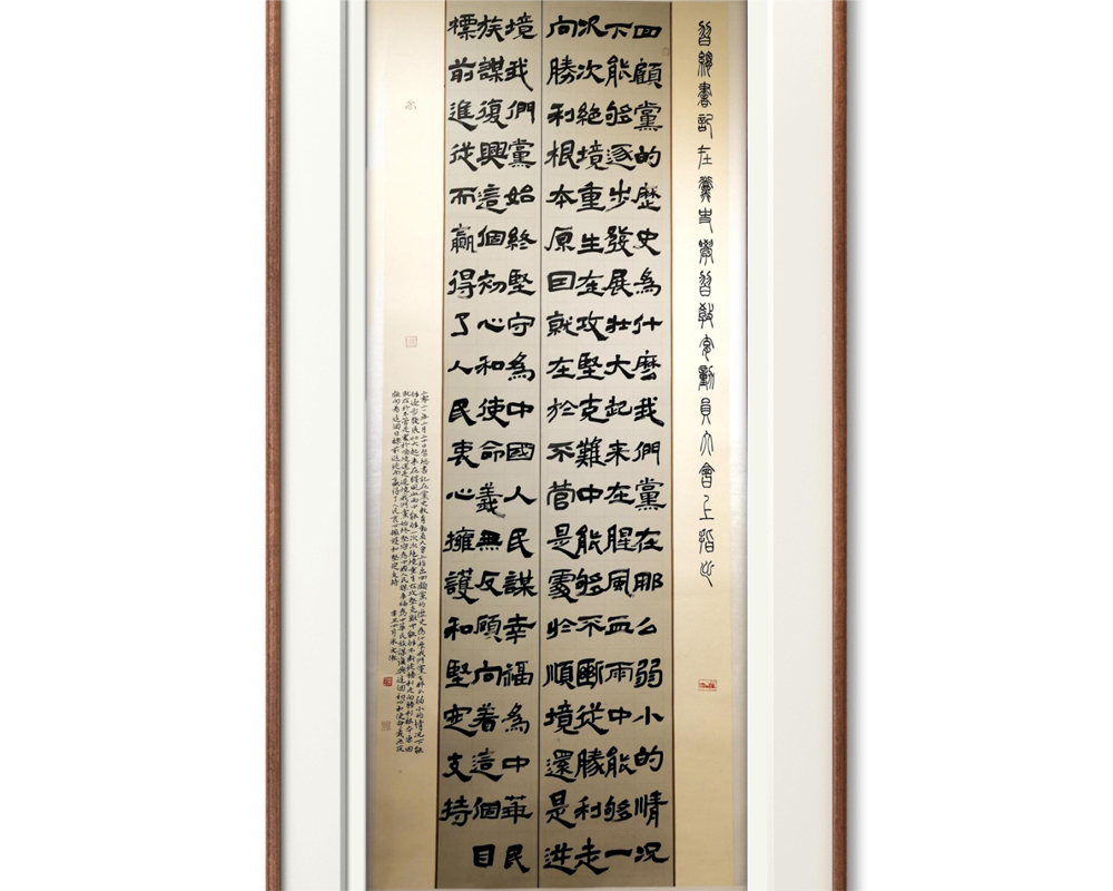 6月19日,庆祝中国共产党成立100周年系列书法展(甘肃篇)——百年华章•红色陇原书法作品展在甘肃艺术馆开幕。点点官网文史学院米文佐教授八尺整张书法作品入选展览并入编本次展览作品集。