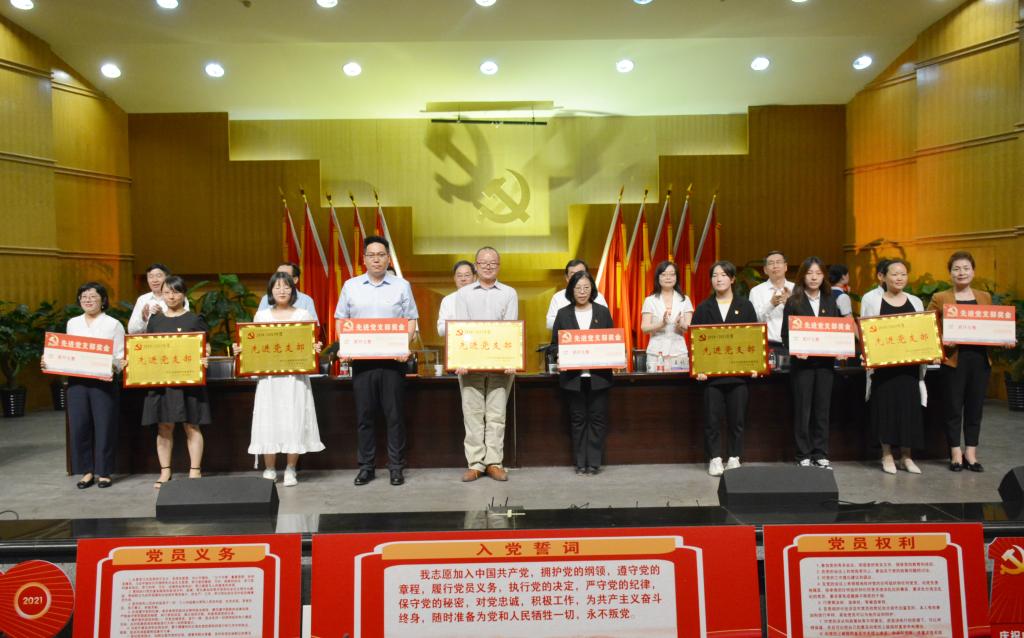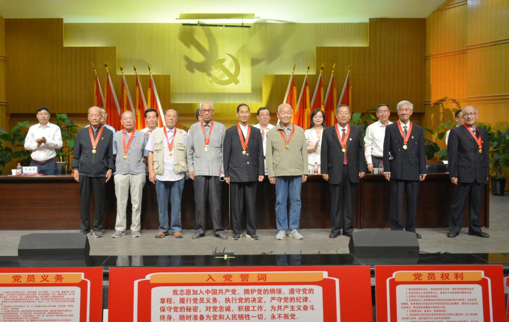 与会校领导向“光荣在党50年”纪念章获得者代表颁发了纪念章,向数学学院党委等9个“先进基层党委(党总支)”、马克思主义学院马克思主义基本原理教研室党支部等35个“先进党支部”、王首道等33名“优秀党务工作者”、雒季等74名教职工和万卫彤等64名学生“优秀共产党员”颁发了奖牌和证书。