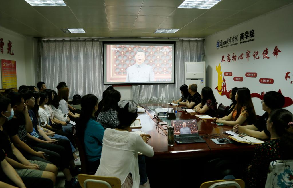 为了让师生第一时间收听收看庆祝中国共产党成立100周年大会,学校分别在校本部大学生活动中心、各二级学院会议室、部分无课教室开辟了会场,组织师生集中观看。