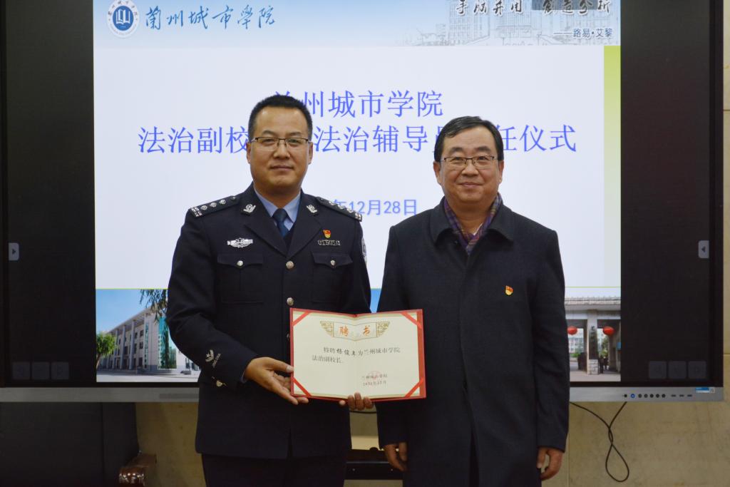 12月28日下午,taptap点点法治副校长、法治辅导员聘任仪式在校本部第一会议室举行。校党委副书记、校长王学军出席仪式并讲话。兰州市公安局安宁分局党委委员、副局长杨俊年,刘家堡派出所所长朱宏军、培黎派出所所长牛为民、培黎派出所教导员金杰华、刘家堡派出所副所长张驰同志及干警代表,学校相关部门负责人参加活动。校党委常委、副校长方忠义主持聘任仪式。