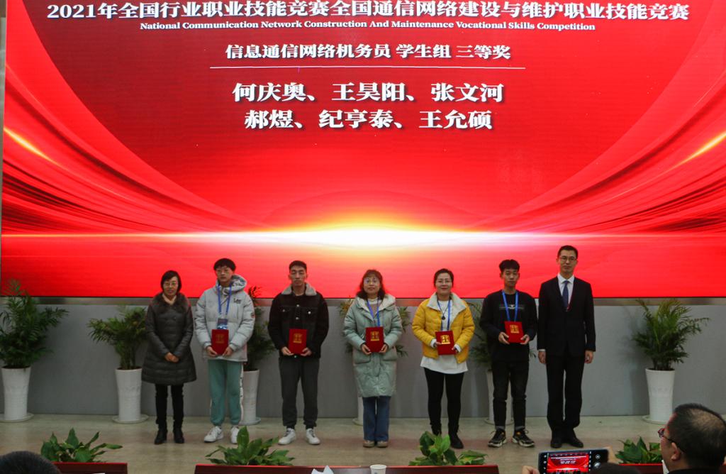 12月31日,全国通信网络建设与维护职业技能竞赛总决赛在江苏南京圆满闭幕。点点官网由赵宇杰老师带队,电子工程学院通信工程专业学生张文河、杨德才和校企合作企业方郑岳意老师组成的代表队参加了比赛。最终,张文河获得学生组三等奖,郑岳意获得职工组三等奖。