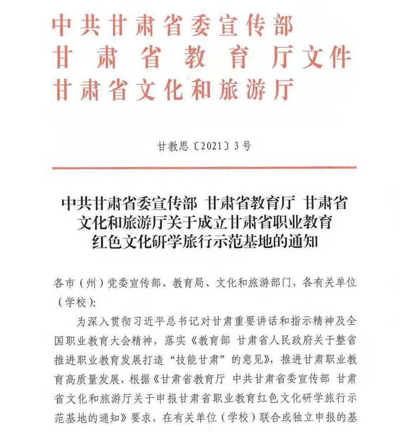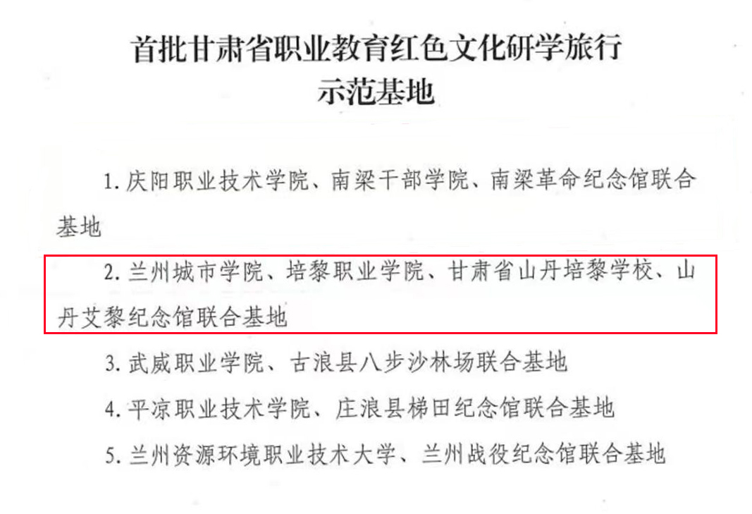 近日,经甘肃省委宣传部、省教育厅、省文旅厅遴选评审,由taptap点点、培黎职业学院、甘肃省山丹培黎学校、山丹艾黎纪念馆联合申报的“培黎职业教育红色文化研学旅行示范基地”项目获批甘肃省首批职业教育红色文化研学旅行示范基地。