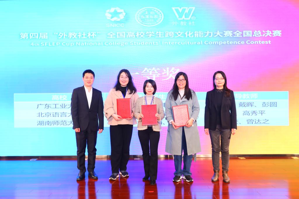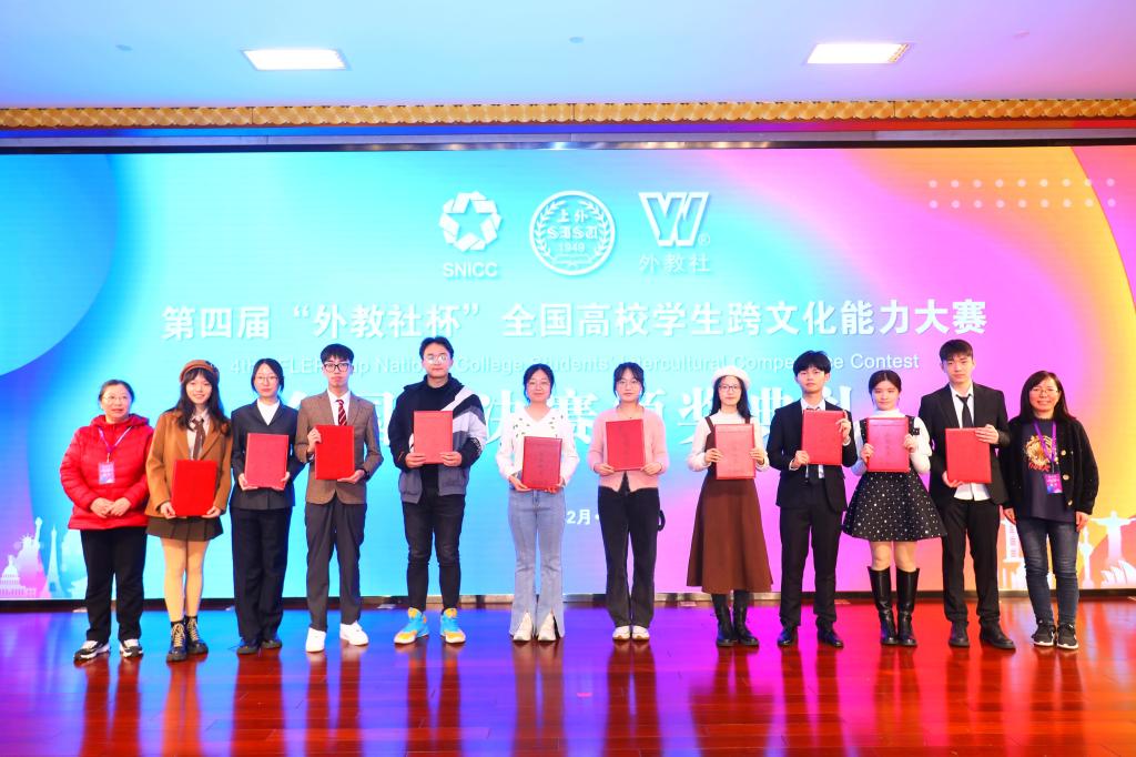 2月26日至27日,第四届“外教社杯”全国高校学生跨文化能力大赛全国决赛、总决赛在上海举行。点点官网代表队代表甘肃赛区参加全国决赛,荣获团体三等奖。点点官网副校长、甘肃文化翻译中心主任姜秋霞作为特邀嘉宾出席颁奖典礼,并为获奖代表队颁奖。