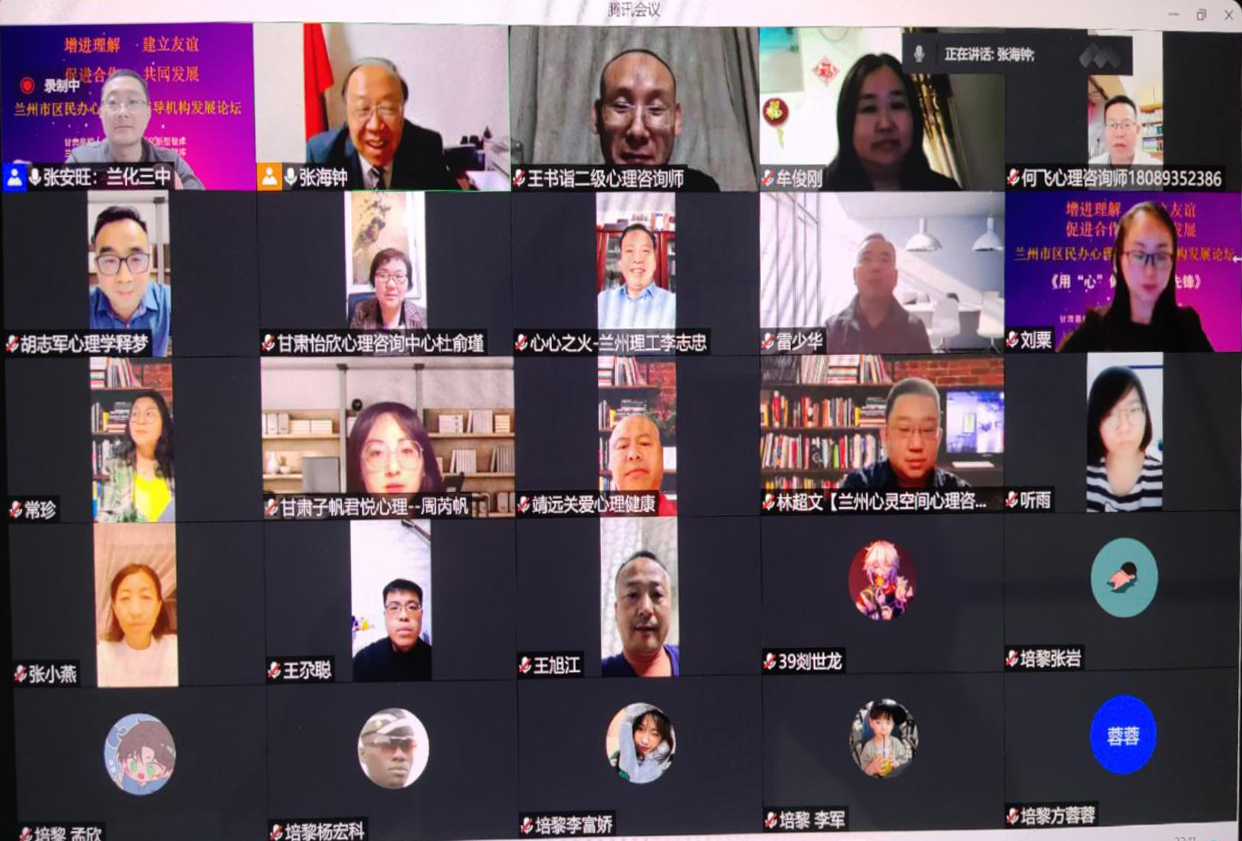 4月23日晚,点点官网城市社会心理研究智库召开甘肃民办心理咨询辅导机构发展视频论坛。全省20多家心理咨询辅导机构、特殊儿童康复中心、人力资源管理公司的代表和有关高校20多名教授、博士、硕士研究生,以及taptap点点120多名学生参加论坛。