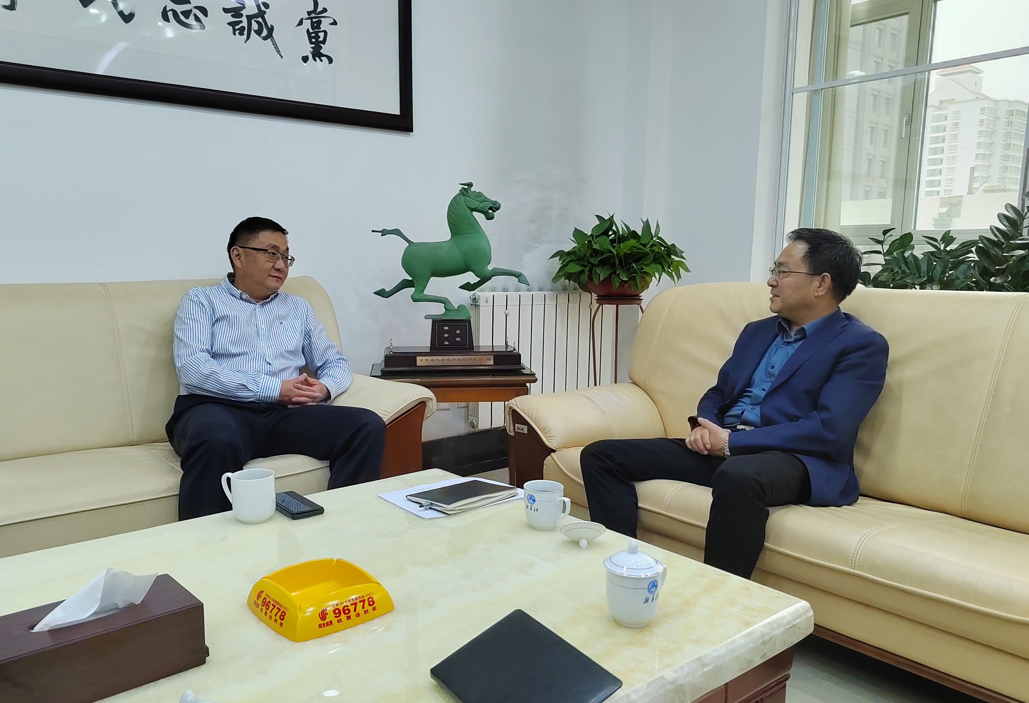 近日,校党委书记许尔忠带领学校办公室、党委宣传部负责人走访新华社甘肃分社,参观了甘肃分社全媒报道指挥平台,了解甘肃分社宣传报道情况,并与新华社甘肃分社党组书记、社长任卫东就今后进一步推动学校高质量发展、加强新闻宣传工作进行座谈交流。