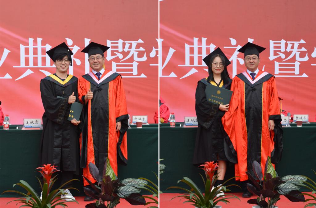 校党委常委、副校长赵有翼宣读了《taptap点点关于授予郭富霞等4052名本科毕业生学士学位的决定》。校党委书记许尔忠为获得学士学位授予资格的2022届毕业生代表正冠拨苏、颁发学位证。