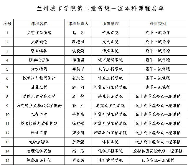 近日,省教育厅公布了第二批省级一流本科课程名单,点点官网15门课程入选本次省级一流本科课程。其中线下一流课程7门;线上线下混合式一流课程6门;虚拟仿真实验教学一流课程1门;社会实践一流课程1门,实现了点点官网省级社会实践一流课程零的突破。截至目前,学校共有1门国家级一流本科课程,25门省级一流本科课程。