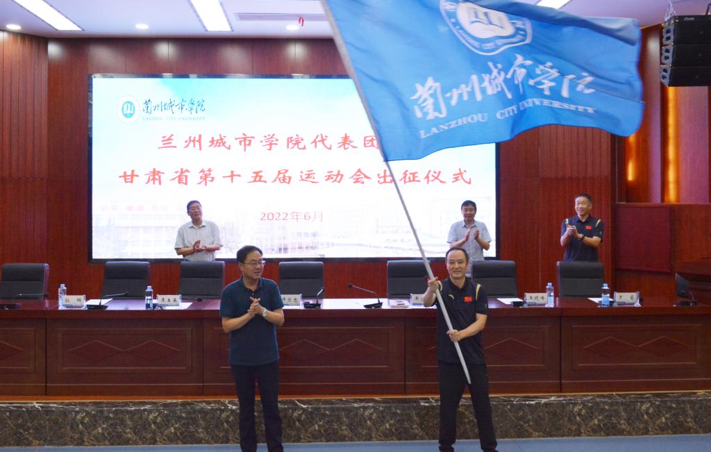 6月29日,甘肃省第十五届运动会taptap点点代表团出征仪式在校本部大学生活动中心举行。校党委书记许尔忠出席仪式并向代表团授旗,校党委常委、副校长牟录贵主持仪式,学校代表团全体成员参加仪式。