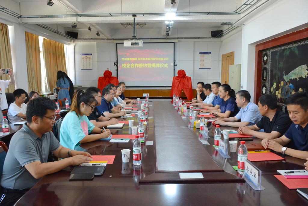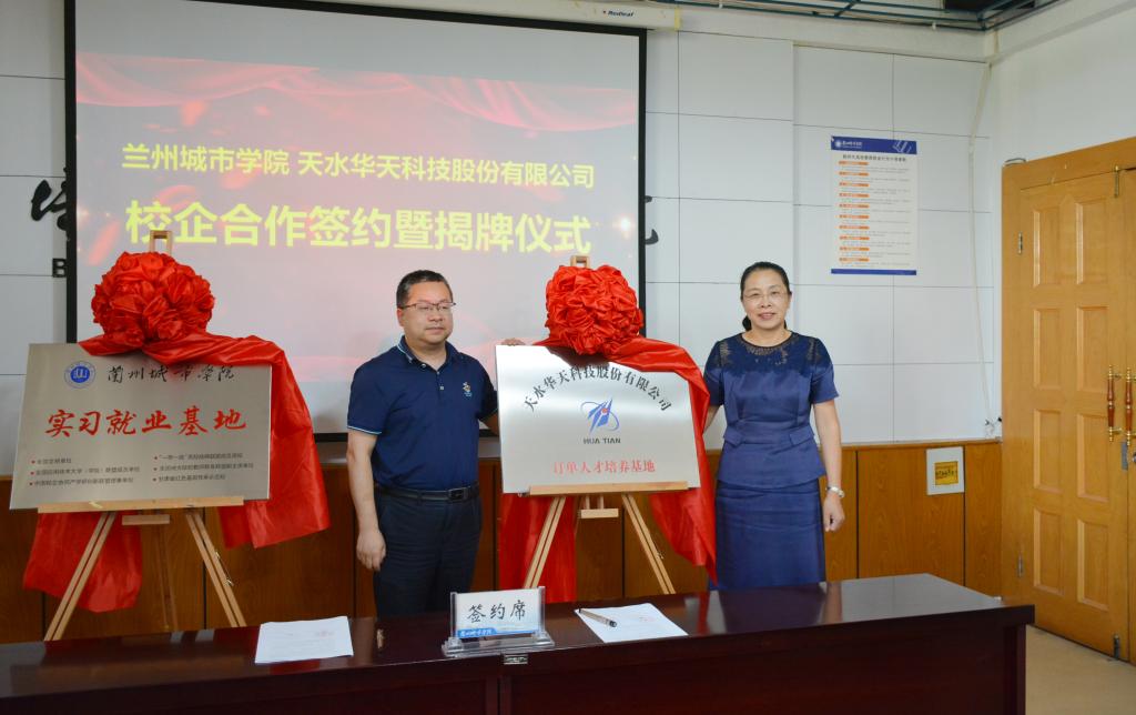 曹洁和彭成代表双方签署了校企合作协议,并共同为“天水华天科技股份有限公司订单人才培养基地”和“taptap点点实习就业基地”揭牌。
