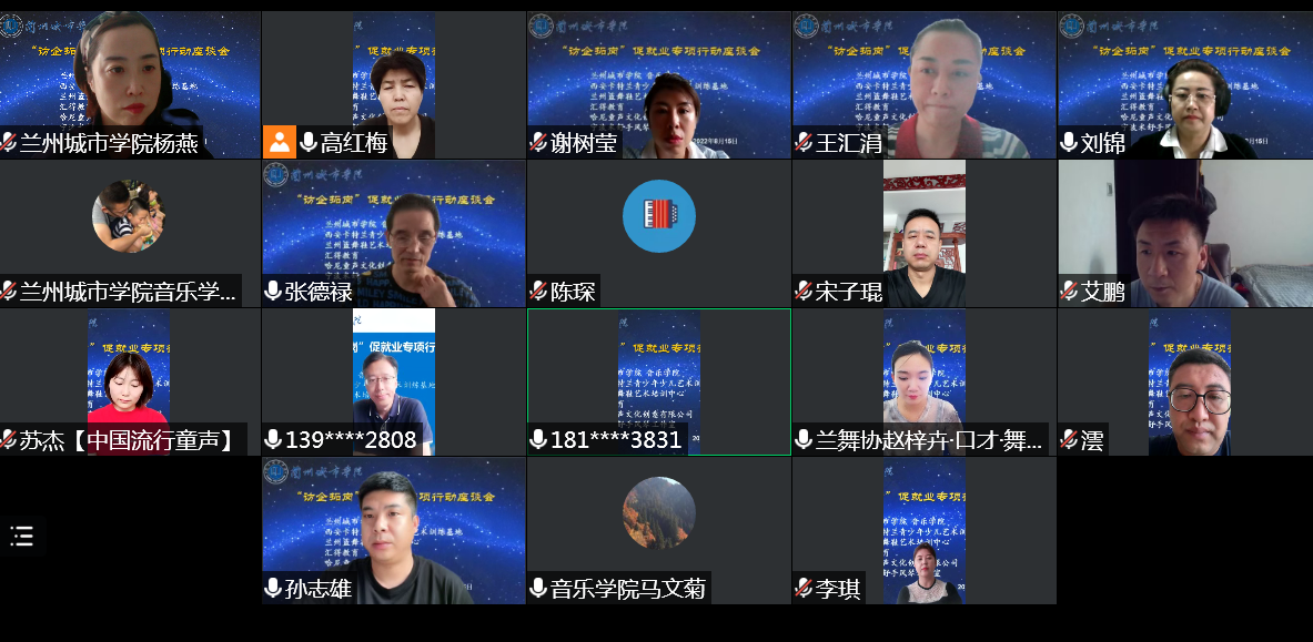 为深入贯彻落实党中央、国务院和教育部、省教育厅关于高校毕业生就业工作的决策部署,继续拓宽毕业生就业渠道,全面推进学生就业工作,8月15日下午,taptap点点音乐学院与卡特兰青少年少儿艺术训练基地、兰州蓝舞鞋艺术培训中心、汇得教育、哈尼童声文化创意有限公司、宁波米舒手风琴工作室等5家企业开展“访企拓岗促就业”专项行动线上交流会。校党委常委、副校长赵有翼,招生就业处负责人,音乐学院党政领导班子成员、系主任、学院办公室主任、团学办主任、毕业班班主任和企业方负责人参加会议。
