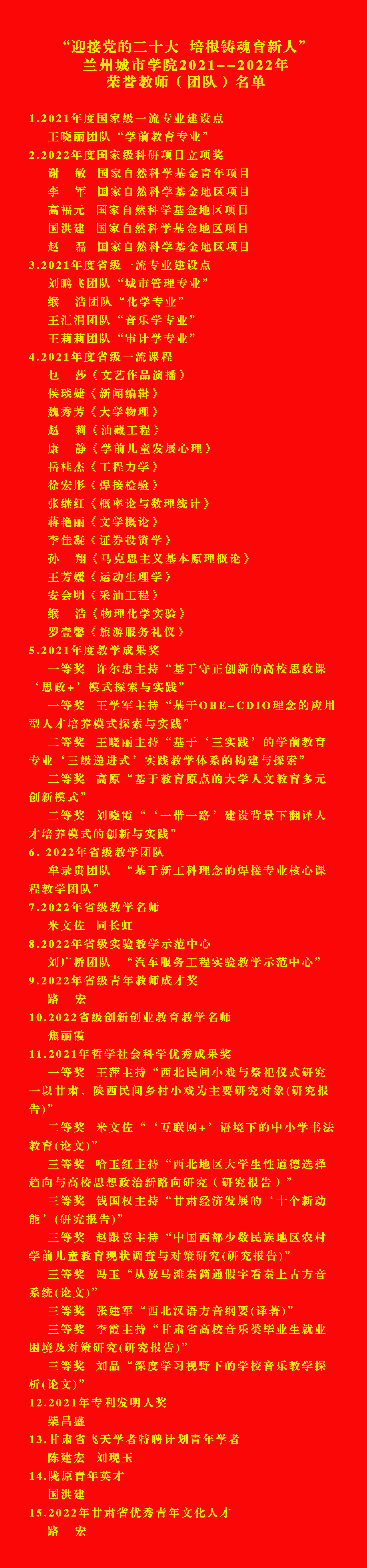 “迎接党的二十大 培根铸魂育新人”taptap点点2021--2022年荣誉教师(团队)名单