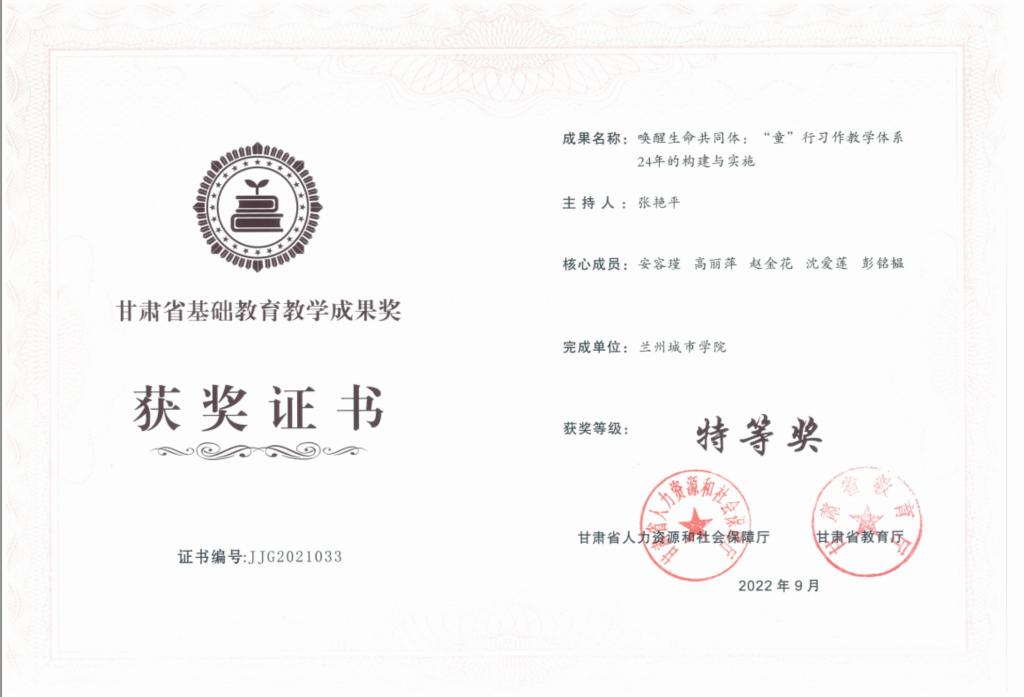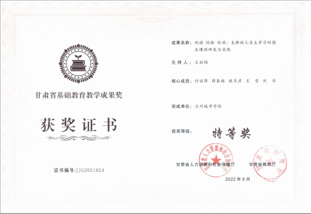 日前,甘肃省人力资源和社会保障厅、甘肃省教育厅联合公布了2021年甘肃省基础教育教学成果奖获奖项目名单,点点官网幼儿师范学院王丽娟教师团队申报的《悦读 悦绘 悦动:支持幼儿自主学习的园本课程研发与实践》和教育学院张艳平团队申报的《唤醒生命共同体:“童”行习作教学体系24年的构建与实施》以第一完成单位获得特等奖,并被推荐参评2022年基础教育国家级教学成果奖。