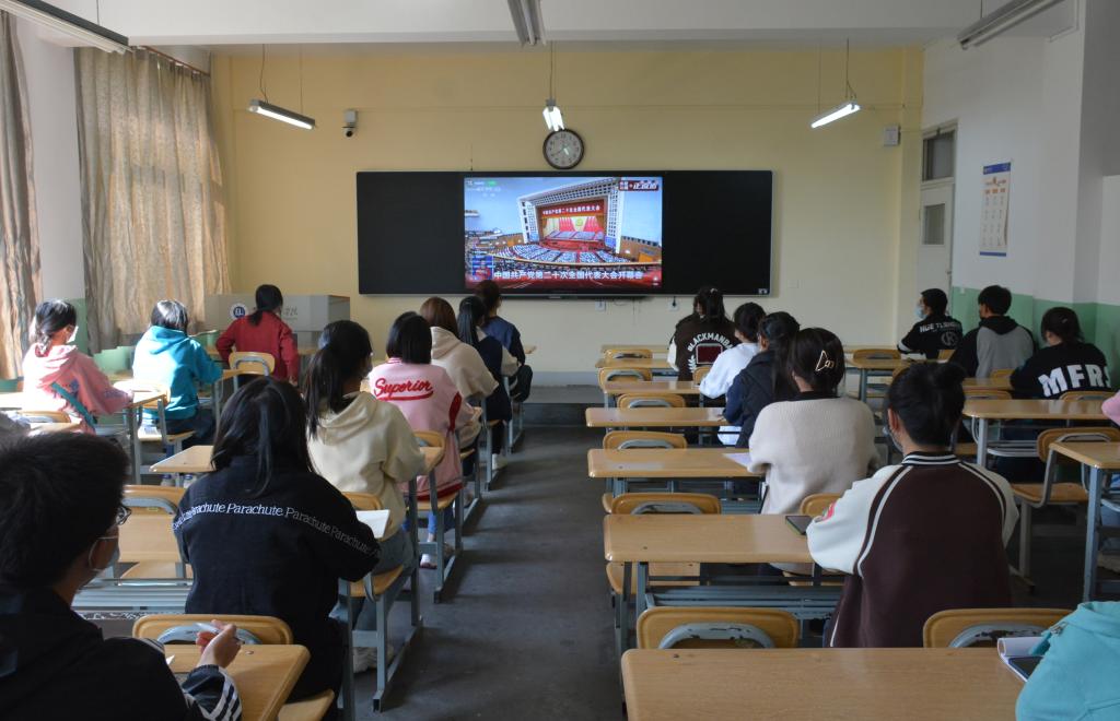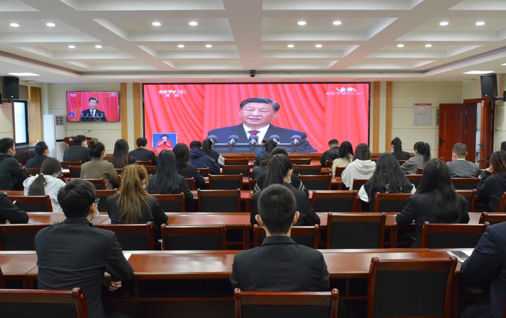 为了让广大师生第一时间学习党的二十大开幕盛况,学校分别在第一会议室、第二会议室、各学院会议室、各单位办公室、学生宿舍开辟会场,在做好疫情防控的前提下,精心组织驻校干部、教职员工和返校学生集中收看,并组织居家办公教职工和未返校学生自行收看大会盛况,深入学习党的二十大精神。会后,大家纷纷表示要全面深刻理解把握习近平总书记报告的丰富内涵和精神实质,把思想和行动统一到大会精神上来,高举中国特色社会主义伟大旗帜,全面贯彻习近平新时代中国特色社会主义思想,弘扬伟大建党精神,自信自强、守正创新,踔厉奋发、勇毅前行,为全面建设社会主义现代化国家、全面推进中华民族伟大复兴而团结奋斗。