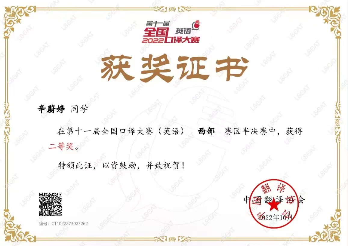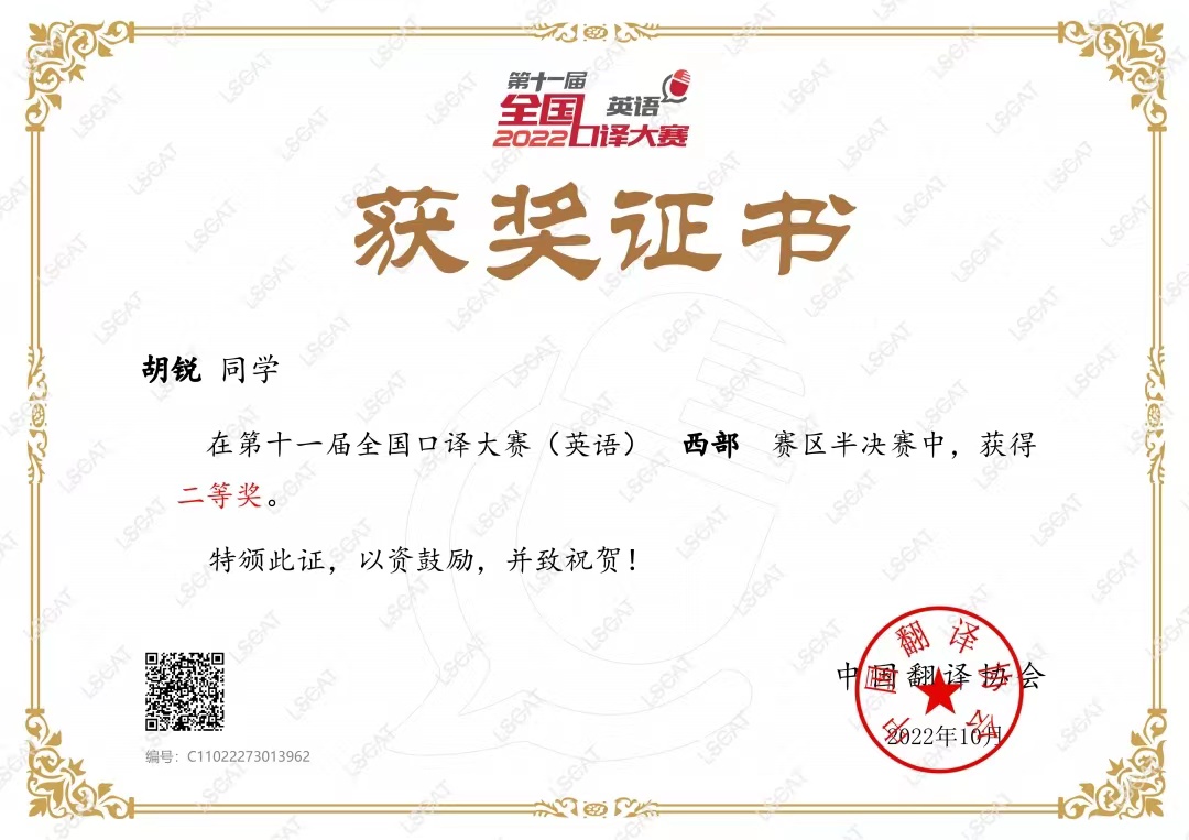 近日,由中国外文局指导、中国翻译协会主办的第十一届全国口译大赛(英语)西部赛区半决赛落下帷幕,共有来自西部11个省份的选手参加比赛。点点官网外国语学院翻译专业学生岳星、胡锐、辛蔚婷荣获二等奖。