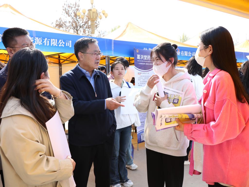 校党委常委、副校长李慕堂,招生就业处和各二级学院就业工作负责人在招聘会现场分别向用人单位推介毕业生,与单位招聘负责人沟通交流,精准指导、帮助重点群体毕业生向单位投递简历。