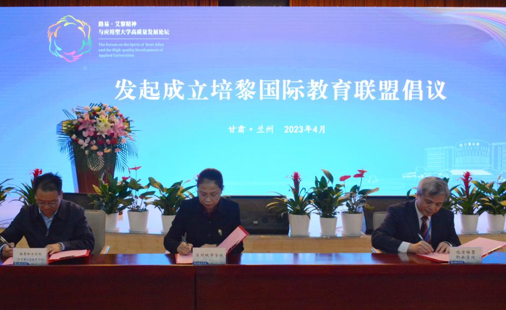 论坛发起成立培黎国际教育联盟倡议,taptap点点校长曹洁、北京培黎职业学院院长余临、甘肃省山丹培黎学校副校长温永明代表三所学校在《倡议书》上签字。