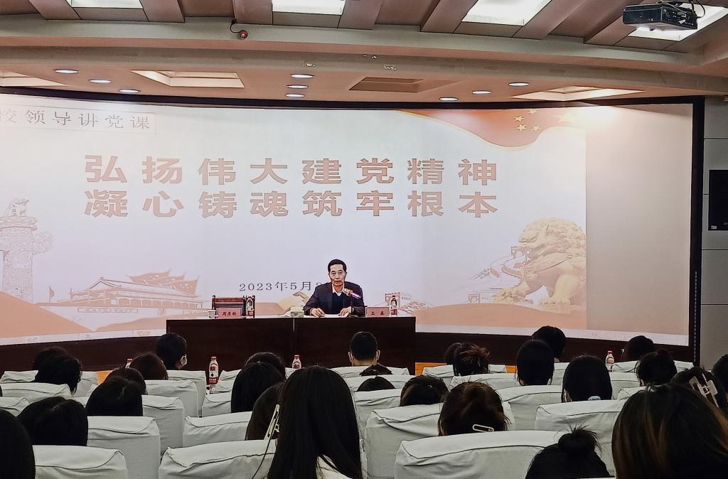 5月8日,校党委副书记王基以《弘扬伟大建党精神 凝心铸魂筑牢根本》为题,在综合楼三楼学术报告厅为联系学院和分管部门师生党员讲授专题党课。