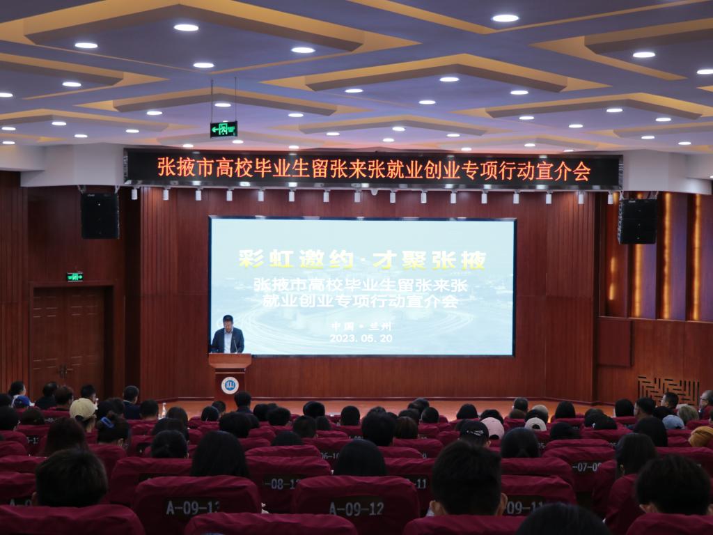 为深入开展学习贯彻习近平新时代中国特色社会主义思想主题教育,贯彻落实习近平总书记关于大兴调查之风的讲话精神,深入落实党中央、国务院关于“稳就业 保就业”各项决策部署,推动“三抓三促”行动、“四强行动”,推动市校高质量发展,5月20日,学校邀请张掖市来校举办以“彩虹邀约·才聚张掖”为主题的张掖市高校毕业生留张来张就业创业专项行动宣介会。