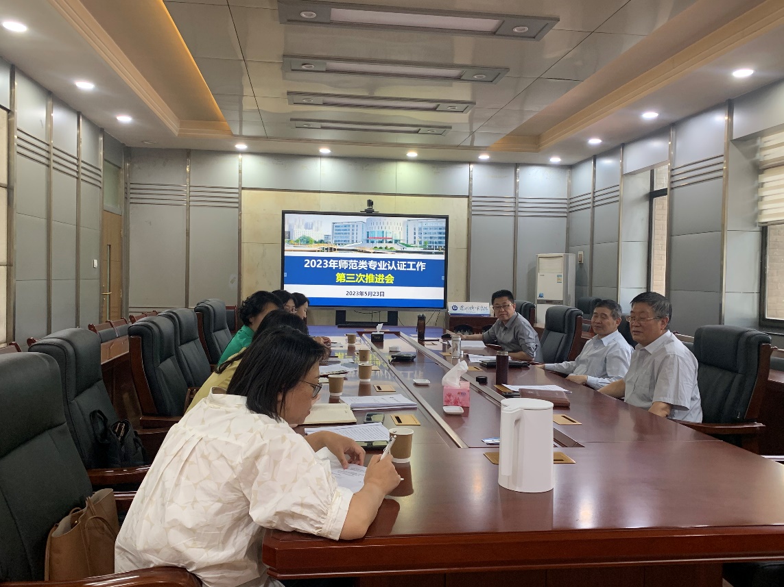 5月23日,学校召开2023年师范类专业认证工作第三推进会,安排部署师范类专业认证自评自建相关工作。校党委常委、副校长牟录贵出席,各专业负责人、教务处(教学质量监测与评估中心)相关负责人参加会议。