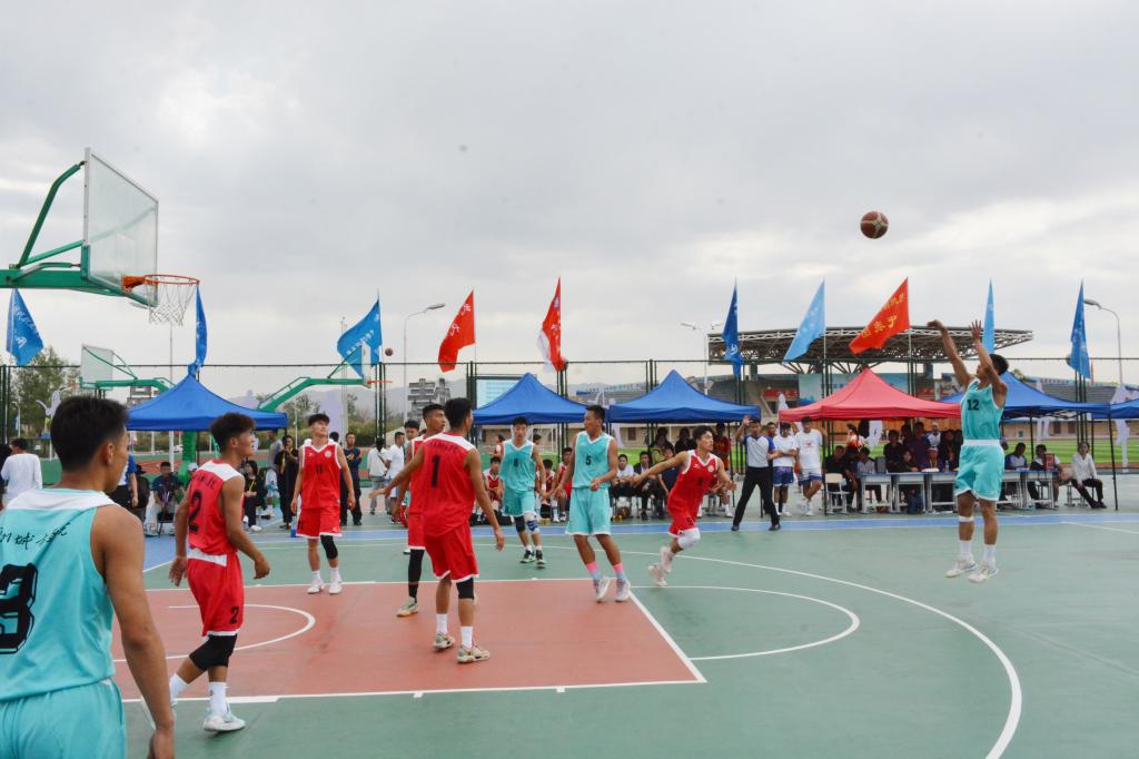 男子篮球乙组比赛中,点点官网代表69:59战胜甘肃民族师范学院。