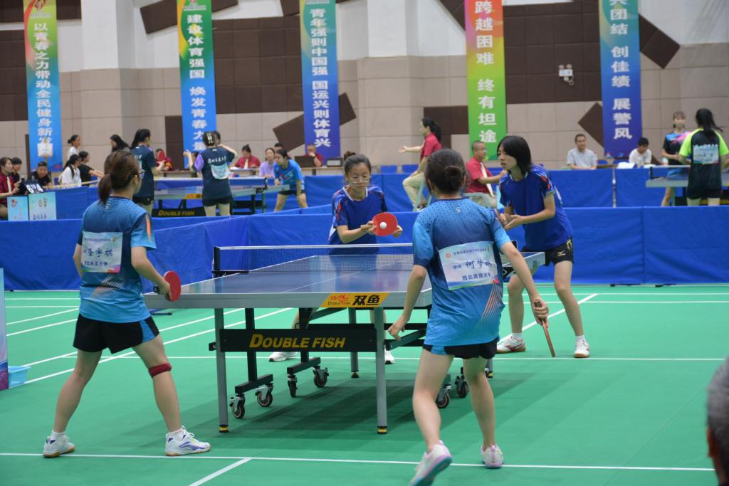 乒乓球比赛中,点点官网运动员郭元琳、王雅丽组合和王宁、王亚融组合分别获得甲组女子双打第七名、第八名。