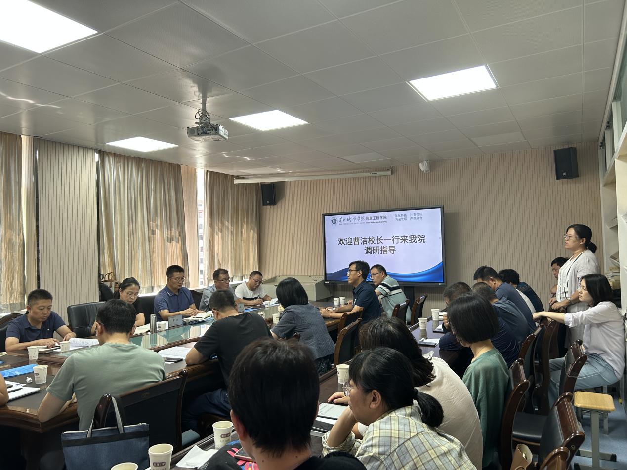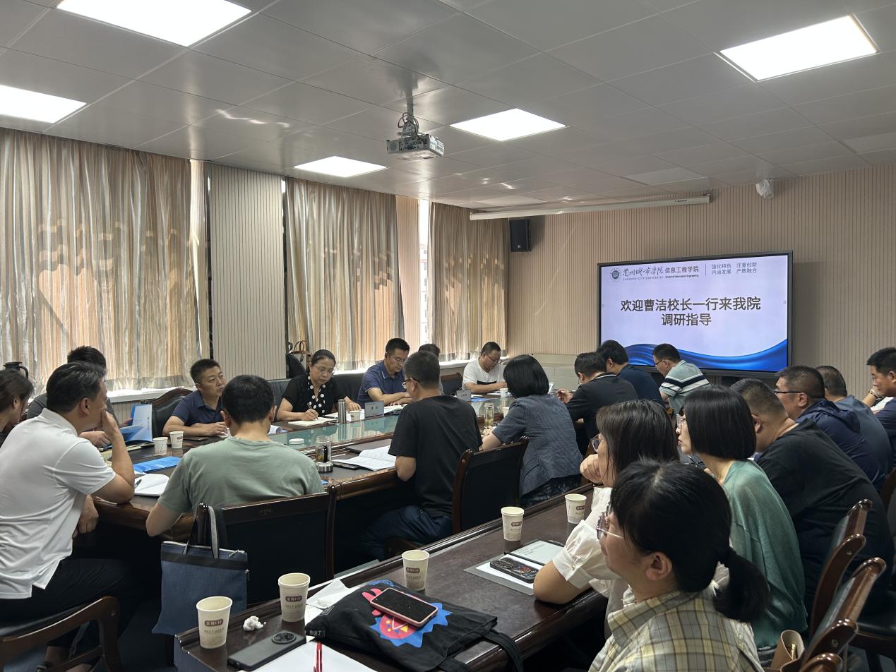 830日上午,校党委副书记、校长曹洁带领学校相关职能部门负责人到信息工程学院开展调研,学院领导班子成员、科级干部、系部主任及教师代表参加了调研座谈会。