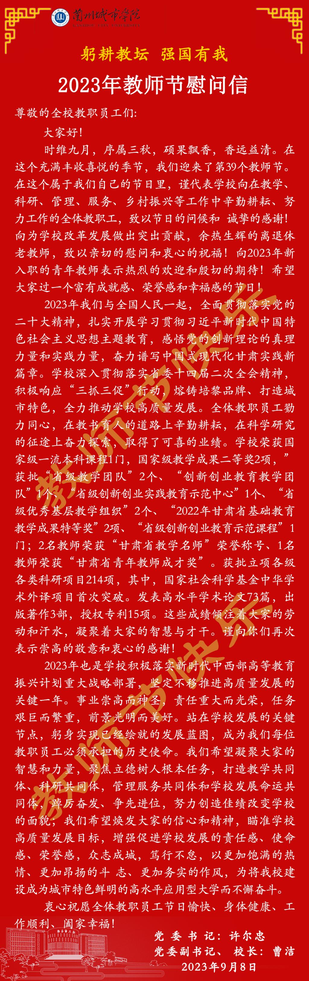 躬耕教坛 强国有我--2023年教师节慰问信
