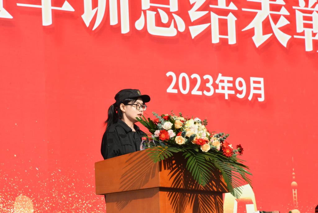 校党委副书记、校长曹洁代表全校教职员工对新同学的到来表示热烈欢迎,向指导军事训练的教官表示真诚的感谢!向辛勤培育学生成长成才的老师和家长表示诚挚的谢意。同时充分肯定了2023级学生军训工作,向在学生军训中获奖的先进集体和优秀个人表示热烈祝贺。