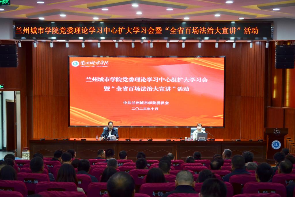 为深入学习宣传习近平法治思想,贯彻落实党的二十大精神,推动“八五普法”规划全面实施,10月8日下午,按照省教育厅安排部署,学校举办党委理论中心组扩大学习会暨全省“百场法治大宣讲”活动,邀请甘肃政法大学王瑞萍教授来校作专题辅导报告。全体校领导、党委常委,校党委委员,处级干部和师生代表近400人参加会议。宣讲会由校党委书记曹洁主持。