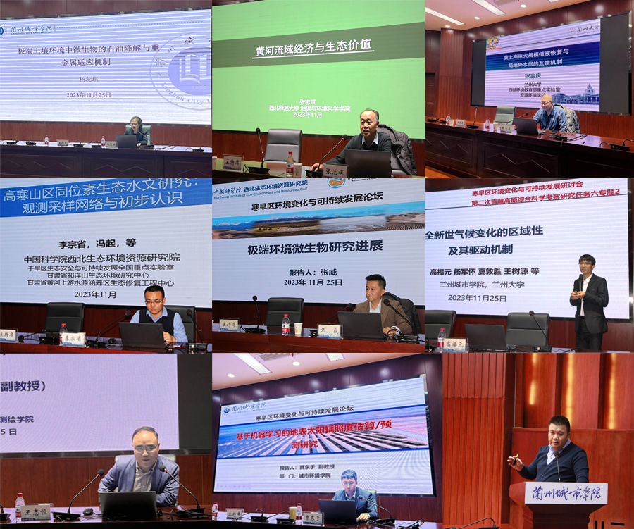 本次研讨会的报告围绕寒旱区生态安全、水文水资源、气候变化、资源利用、生态环境治理等内容展开。西北师范大学地理与环境科学学院教授张志斌、兰州大学资源环境学院教授张宝庆、中国科学院西北生态环境资源研究院研究员李宗省和张威、天津城建大学地质与测绘学院教授王志恒以及taptap点点城市环境学院高福元、贾东于、李军、杨蕊琪四位博士,分别作了题为《黄河流域经济与生态价值》《黄土高原大规模植被恢复与局地降水间的互馈机制》《高寒山区同位素生态水文研究:观测采样网络与初步认识》《极端环境微生物研究进展》《青藏高原地区交通优势度时空演变特征及其影响因素》《全新世气候变化的区域性及其驱动机制》《基于机器学习的地表太阳辐射照度估算/预测研究》《中侏罗世四川盆地古气候变化——基于深时古土壤记录及其对兰州盆地的研究启示》《极端土壤环境中微生物的石油降解与重金属适应机制》的报告。