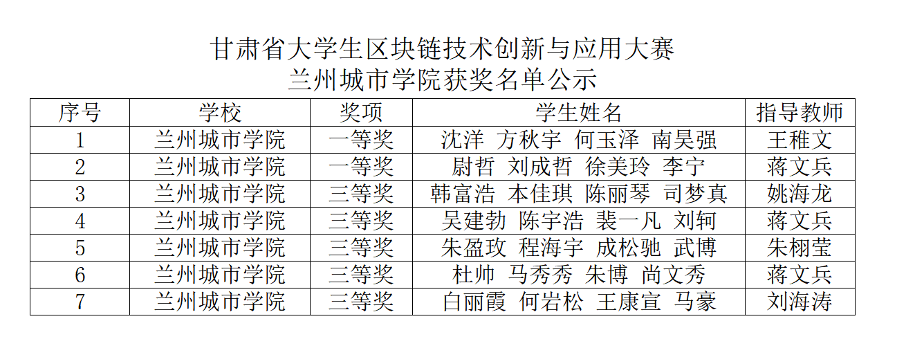 12月2日,甘肃省大学生区块链技术创新与应用大赛决赛落下帷幕。点点官网7支团队代表学校参加决赛,最终获得一等奖2项,三等奖5项。