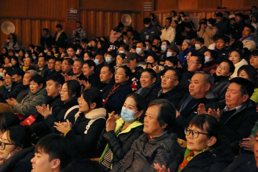 taptap点点民族管弦乐团用激昂的弦乐、悠扬的管乐,为现场观众献上了一场充满典雅风尚的音乐盛宴。演出在热闹欢腾的《庆典序曲》中开始。《在水一方》如诗如歌如画,将师生的思绪带回了温暖的家园;旋律柔美抒情、节奏徐缓舒展的《望春风》《彩云追月》让观众在辞旧迎新的季节里放飞心灵,迎接美好的未来;《瑶族舞曲》描绘出中华民族如同石榴籽一样紧紧抱在一起,共同走向美好的未来;立足于民族文化艺术的《丰年祭》演绎了中国台湾高山族收获丰收的文化风貌;《七里香》《茉莉花》旋律起伏跌宕,带领观众一起感受民族音乐的魅力和力量;《我和我的祖国》深情演绎对家国的眷恋之情;乐团和现场观众互动,共同演绎的《世间始终你好》将晚会气氛推上高潮;演出在欢快的《花好月圆》中落下帷幕,整场演出精彩纷呈,欢快温馨的氛围感染了在场每一位观众,赢得了阵阵热烈的掌声。