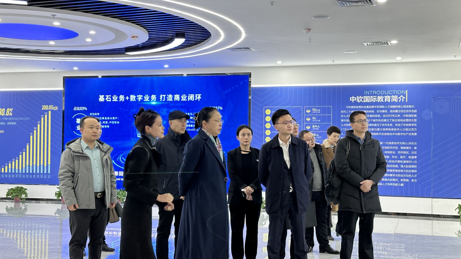 12月27日,校党委书记曹洁参观考察中软国际教育科技集团,招生就业处、教务处、电子工程学院、信息工程学院、艺术设计学院负责人参加考察活动。中软国际教育科技集团西北区域总经理邓思远陪同参观了兰州科技创新产教融合中心可视化展厅、实训场地及教学设施,详细介绍了公司的业务范围、产业布局、发展历程以及未来发展方向。