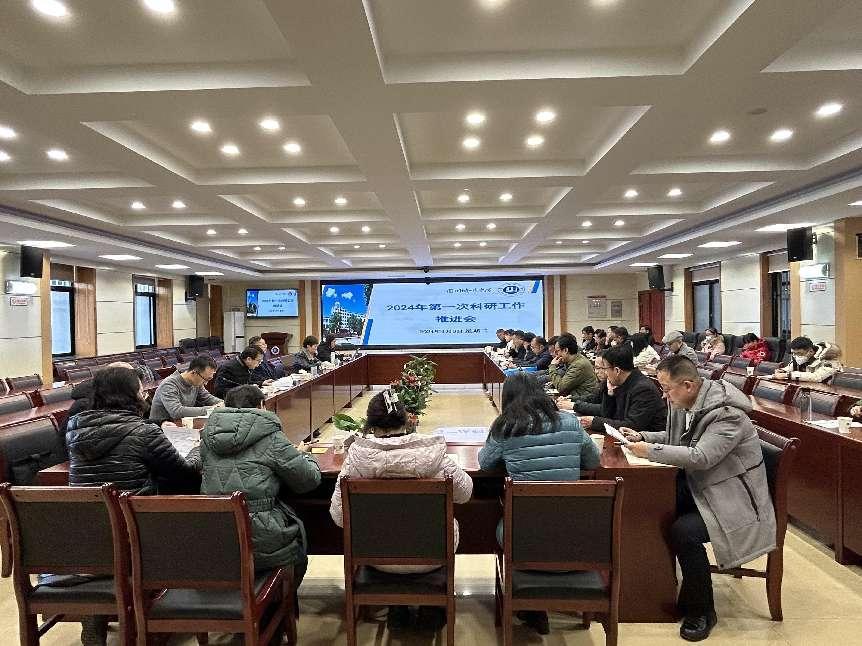 1月9日下午,学校召开2024年第一次科研工作推进会。党委常委、副校长张发旺、王素云出席会议,各二级学院院长、主管科研副院长、2024年度国家基金申报重点支持申请人以及科学技术处全体人员参加会议。