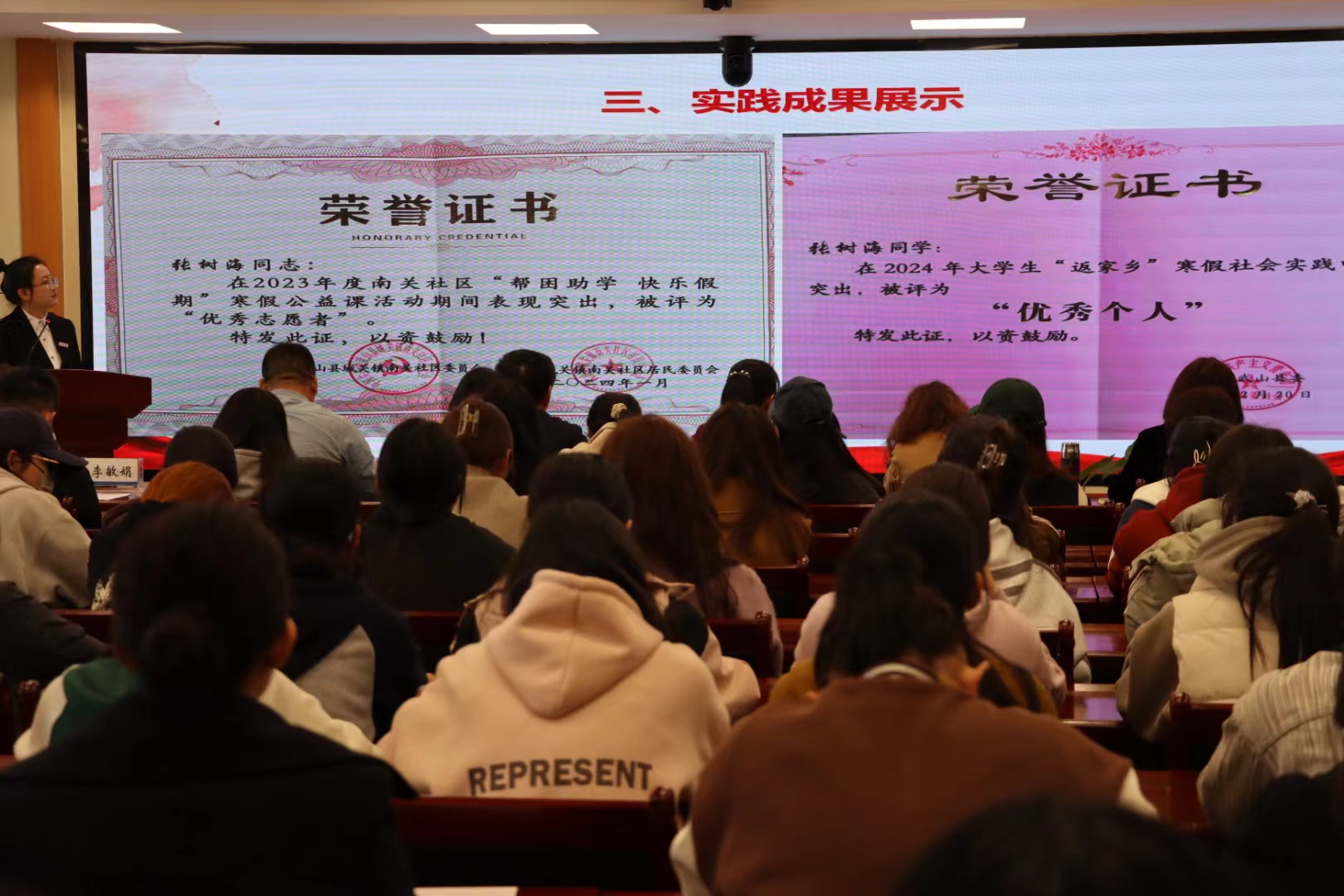 成果分享会上,李慕堂和相关单位负责人为获得社会实践优秀学生代表颁发荣誉证书。李慕堂在讲话中指出,社会实践是一个持续的过程,希望同学们能拿出“不待扬鞭自奋蹄”的主动担当,以更加广阔的视野和更加积极的态度关注国家和社会的发展,将社会实践日常化,在服务他人、贡献社会中提升自我价值。他强调,各相关部门要进一步加强统筹谋划、协作配合,不断完善相关机制,为同学们提供更多的平台和机会;要把社会实践活动作为育人的重要载体,组织动员、总结宣传和展示成果,引领更多学生参与社会实践,提升育人实效。