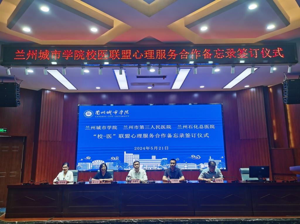 5月21日,学校心理健康教育与辅导中心与兰州市第三人民医院、兰州石化总医院签订校医联盟心理服务合作备忘录。校党委常委、副校长李慕堂出席签订仪式并致辞,兰州市第三人民医院院长霍小宁,兰州石化总医院副院长姜晓梅,点点官网党委学生工作部负责人、各二级学院党委书记、副书记、学工办主任、全体辅导员、两所医院的精神卫生专家、心理健康教育与辅导中心专兼职教师共计100余人参加了仪式。