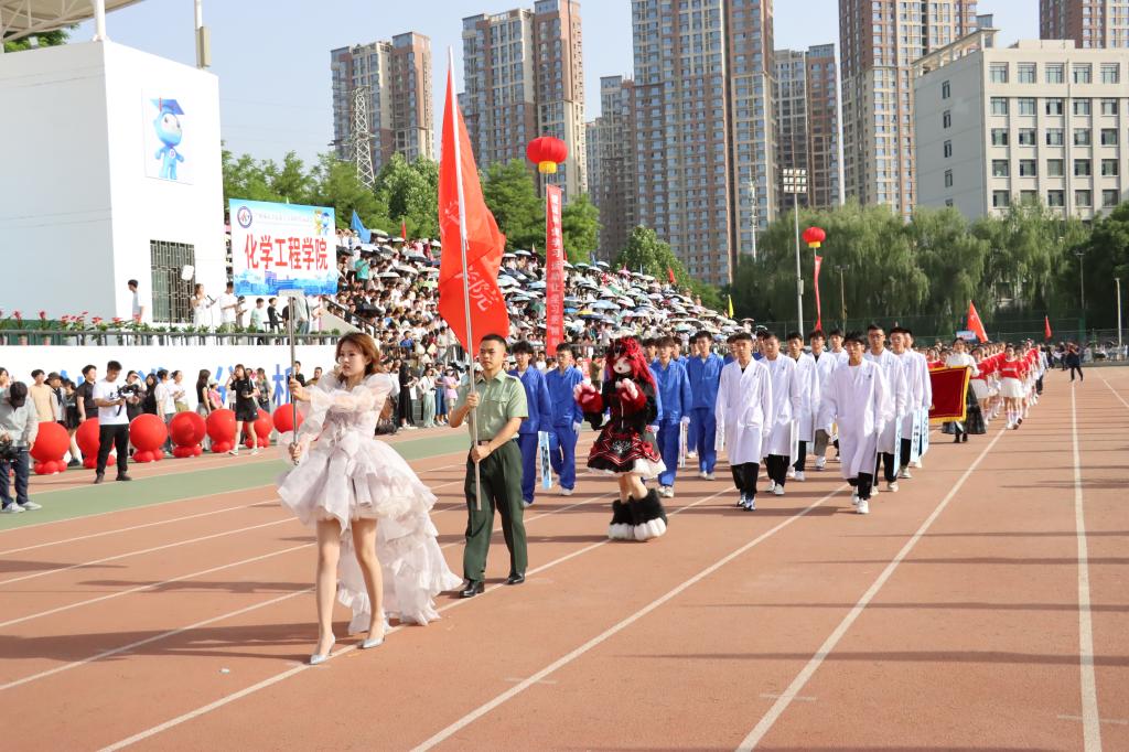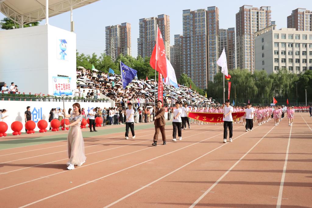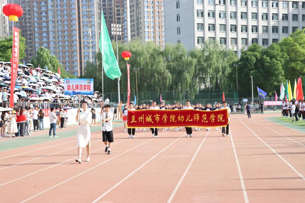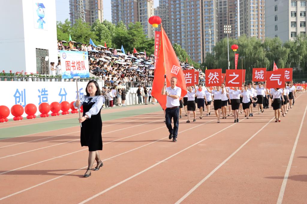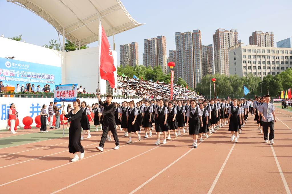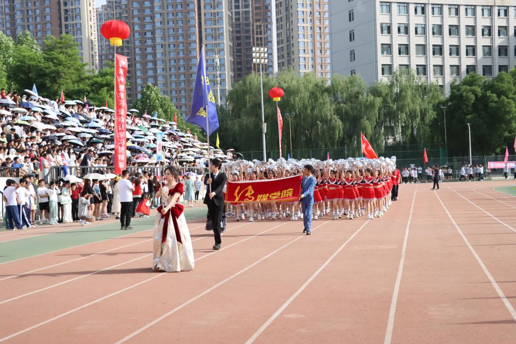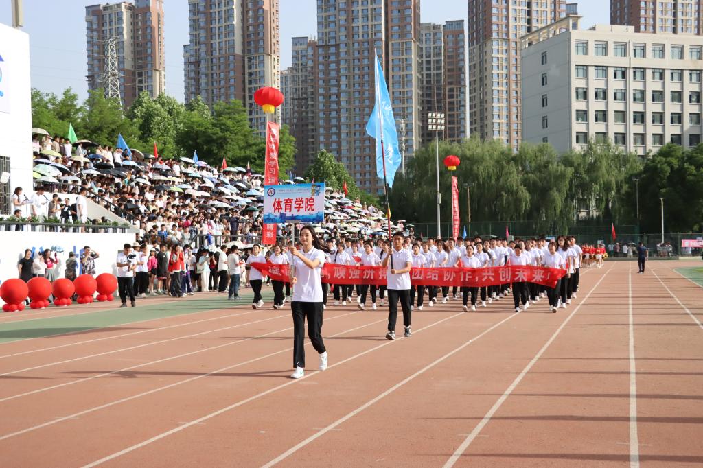 在欢快激昂的运动员进行曲中,国旗队、会徽队、校训队、彩旗队、裁判员队伍和各学院、各单位代表队精神抖擞,意气风发,步伐整齐,喊着嘹亮的口号依次入场。