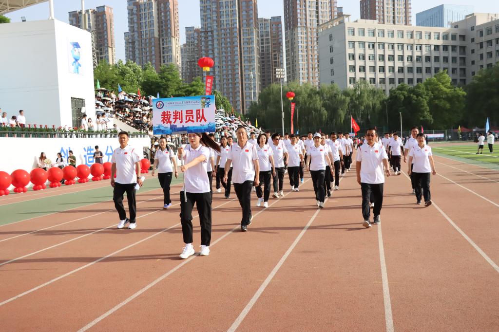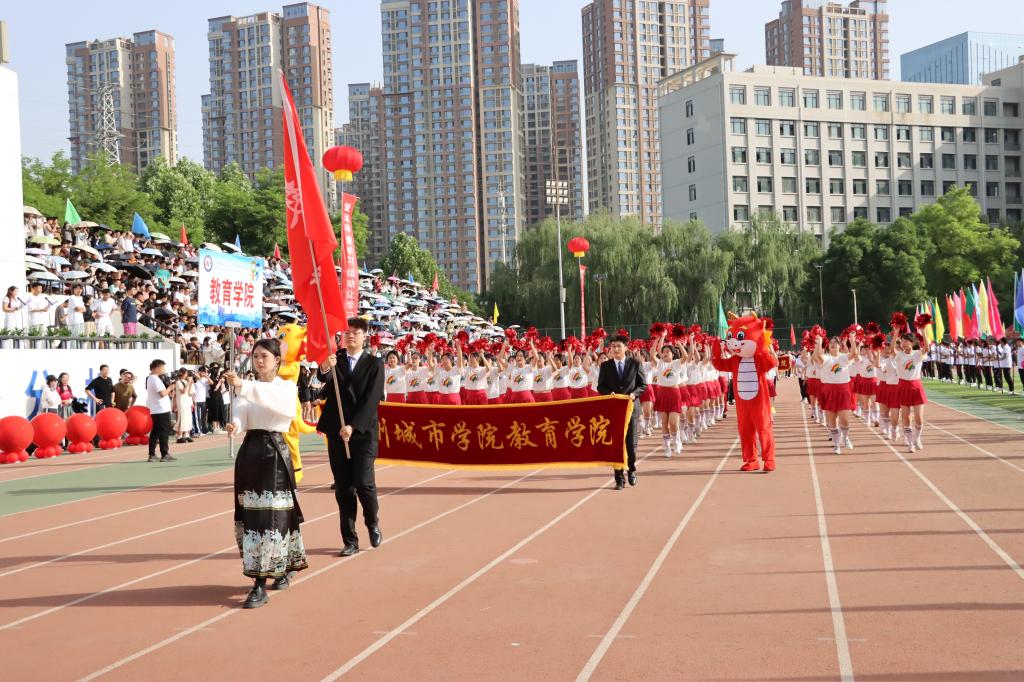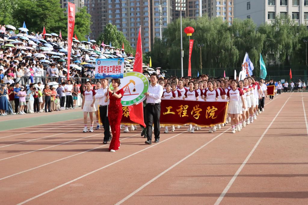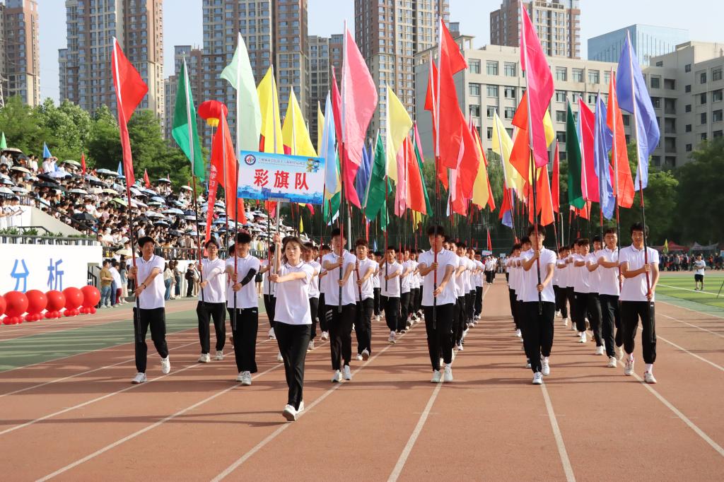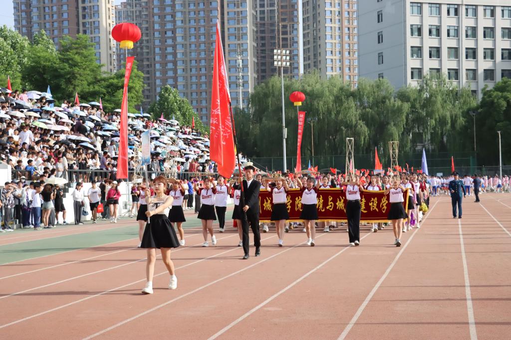 校党委常委、副校长李慕堂致开幕词。他指出,一年一度的田径运动会是学校全面贯彻立德树人根本任务,落实“五育并举”要求的重要途径;是砥砺意志、升华自我的熔炉;是增强体质,促进身心健康的良方;是培育团队意识、协作精神的沃土。他希望,每一位参赛运动员都能够以昂扬的斗志迎接每一次挑战,用青春和激情点燃这个充满希望的季节,所有的教练员和工作人员能够发扬团结协作、无私奉献的精神,为运动员们提供有力的支持和热情的服务,营造公平、公正、热烈的竞赛环境,确保比赛顺利进行。他强调,一直以来,学校高度重视体育教育,学生体育工作成效显著,希望全校上下坚定信念、奋勇向前,团结协作,勇攀高峰,将运动场上永不言败,一往无前的拼搏精神转化为全力推动学校的高质量发展的内在动力,为建设城市特色鲜明的高水平应用型大学而不懈奋斗,以优异成绩为中华人民共和国成立75周年献礼。