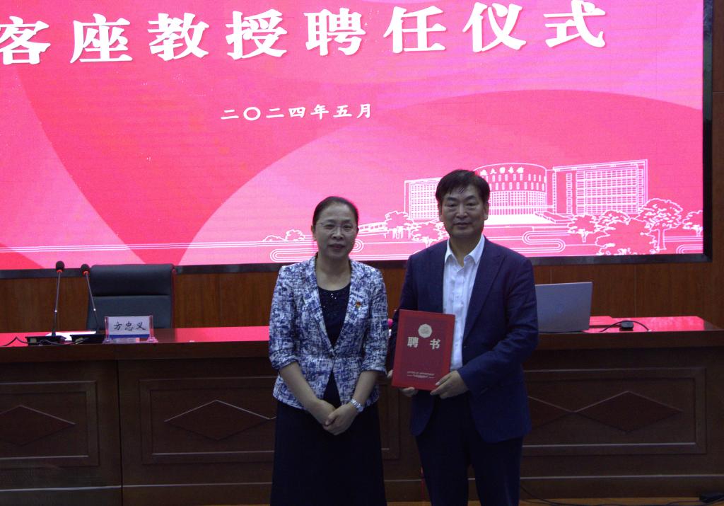 会后,曹洁向刘靖北颁发客座教授聘书。
